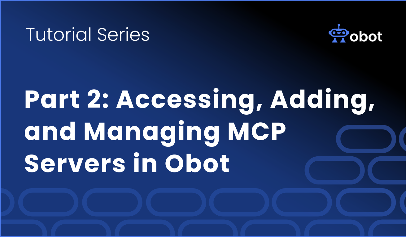 Introduction In Part 1 of this series, we explored Obot’s architecture and core components. Now we move from theory to practice: This guide provides step-by-step instructions for deploying Obot with Docker, connecting to an existing MCP Server from the registry, and successfully querying the MCP Server. Managing MCP servers in Obot starts with understanding the […]