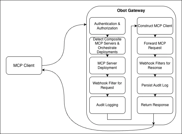 Originally, Obot ran its own MCP server. Every incoming MCP request flowed through that server, where Obot would: