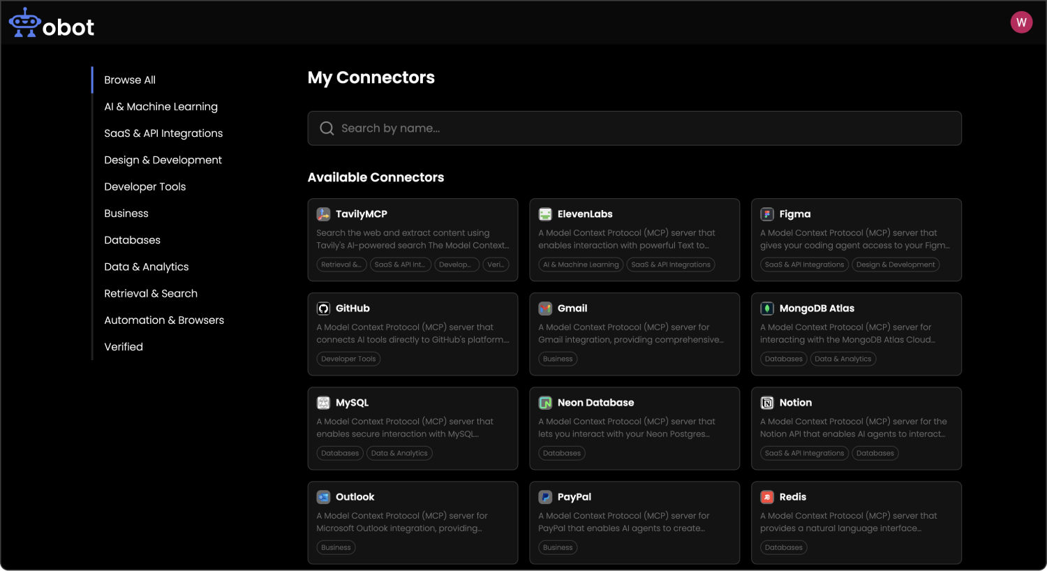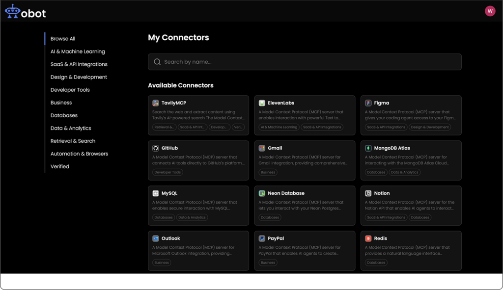 Obot is an enterprise MCP gateway platform that provides a unified layer for managing how AI agents discover, access, and interact with tools, APIs, and data sources. It acts as both a gateway and orchestration layer, enabling organizations to centralize tool connectivity while maintaining control over access, execution, and workflows.